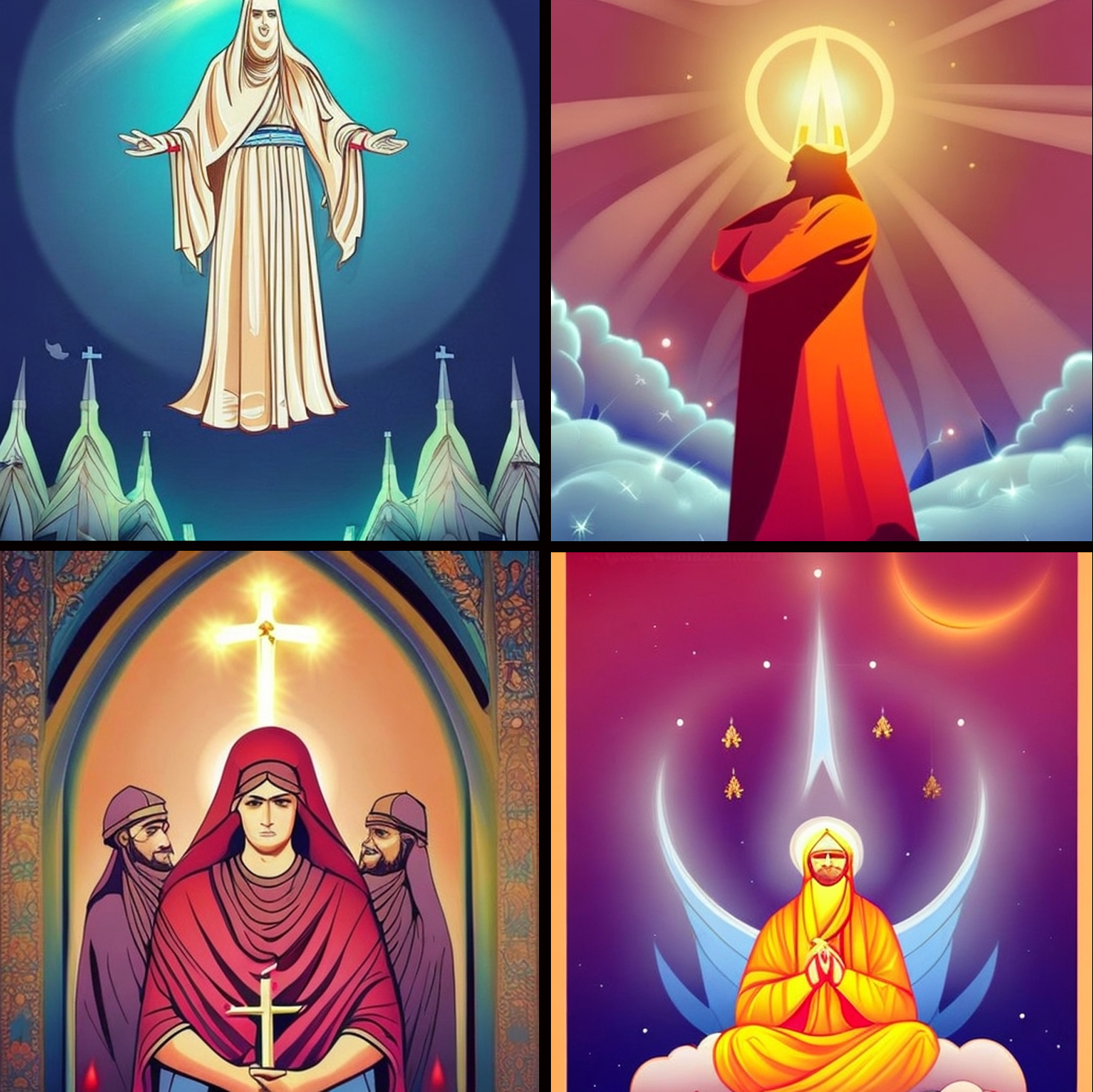 DALL-E -tekoälyn luoma kuva sanoista ”religion, faith, atheism”