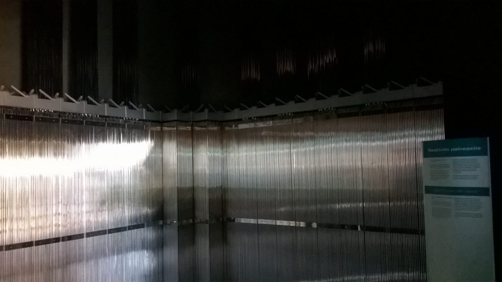 Niin sitten kävin kaikella hartaudella showhuonetta läpi. Menin virtuaaliseen uraanikaivokseen, ydinvoimalan valvomossa säädin härpäkkeitä, ja sinne voimalan ytimeenkin saattoi kävellä, siis sinne missä ne uraanipötkylät laskeutuvat veteen ja jotain tapahtuu. Siis tänne: