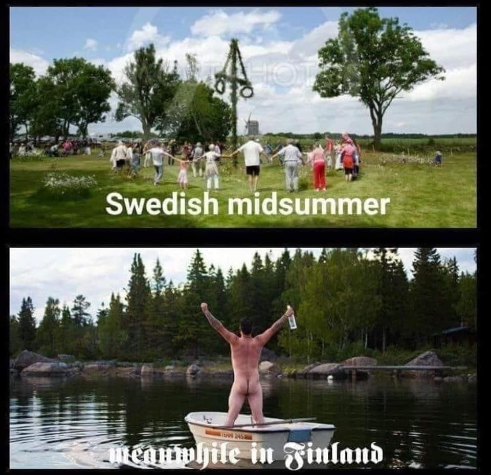 Mielenkiintoisesti Suomessa keskikesän juhla on nimetty luterilaisen uskonnon erään tietyn sivuhenkilön mukaan. Ruotsissa se on vain mittumaari. Niinpä me suomalaiset vietämmekin tätä keskikesän juhlaa luterilaisittain kristillisesti, jos nimen mukaan mennään, kun entisen isäntämaamme kansalaiset oikein repäisevät ilon irti ja heittävät ns. persiit olalle.