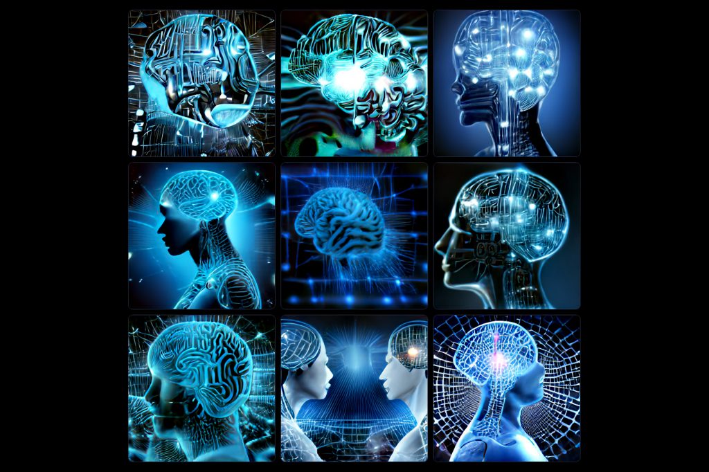Kuva: ensimmäinen nopealla haulla eteen tullut AI-kuvantekokone, Craiyon nimeltään. Aihesanoina God and artificial intelligence ja parin minuutin jälkeen näytölle ilmaantui tuo. Aika vaatimaton vielä. Kehittyneempiäkin kuvanteko-tekoälyjä kyllä on jo. Mielenkiintoisesti tämä tekoäly tulkitsee jumalan sijaitsevan aivoissa. Aivan kuten minä sen ymmärrän…