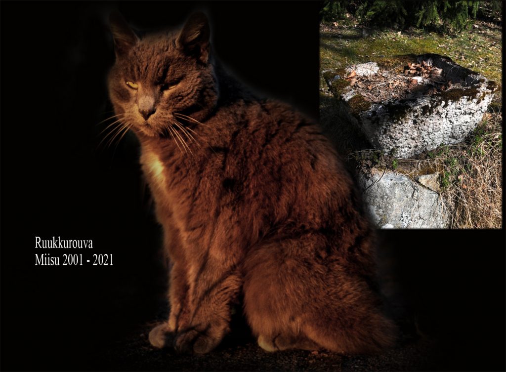 Kissa nyt on vain kissa, mutta tämä oli meillä vajaat 20 vuotta. Se oli osa elämäämme ja arkeamme. Tärkeä osa neljän lapsemme lapsuusaikaa. Nuorempi poikani sen nimesi ollessaan kolmevuotias. Miisu. Pellolla markka-aikaan syntynyt. En ollut innostunut kissan hankkimisesta ja arvelin ketun, ilveksen tai pöllön sen vievän tai jäävän auton alle. Mitä vielä, yhtenä kesänä se tuli hyvin juttuun takapihallamme ilmeisesti asustaneen ketun kanssa. Naapurin koiran se ajoi vihaisesti pois pihalta. Kerran vaimollani oli keuhkokuume. Kissa meni rinnan päälle makaamaan ja kehräämään. Liekö vaistonnut hoidon tarpeen vai oliko siinä vain mukavan lämmin paikka. Poikani, jonka kanssa kissamme kuolemisessa läsnä olimme, oli murrosiässä vaikeuksissa itsensä, meidän ja maailman kanssa. Eräiden vaikeuksien jälkeen kotiin palattuaan kissa oli lohduttajista tärkein.
