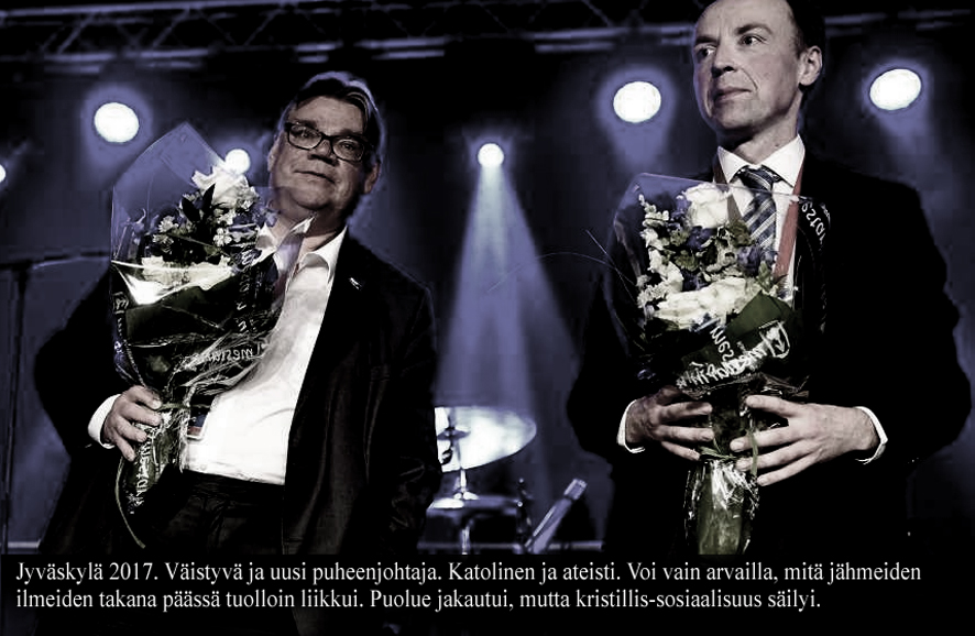 Mutta kuitenkin tästä ateistisesti suuntautuneesta puoluejohdosta huolimatta Perussuomalaiset on ateistisen puheenjohtajan mukaan ”kristillis-sosiaalinen” puolue. On mielenkiintoista, että puolueen johdon kärki on tunnustuksellisesti ateistista, mutta puolueen kannattajakunnasta suurin osa lienee enemmän tai vähemmän uskovia.