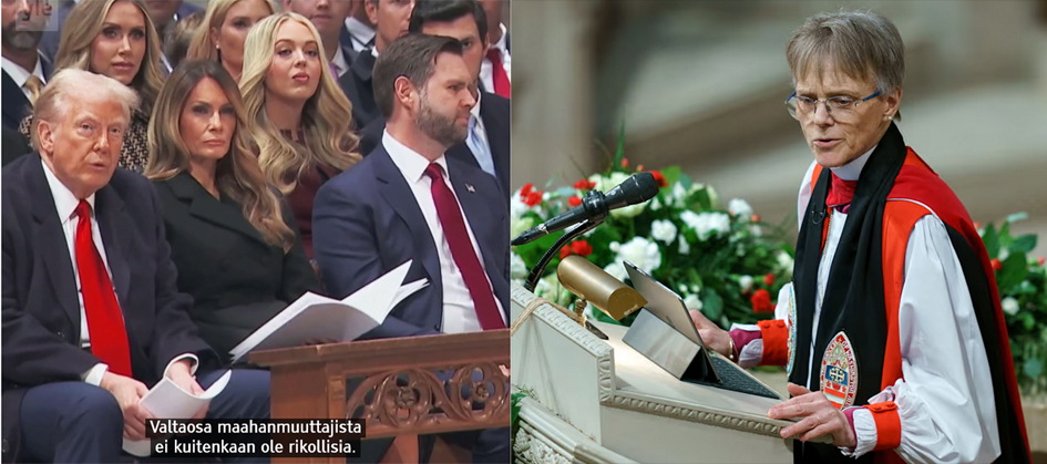 Mariann Buddenia, Washingtonin piispaa, voi huoletta luonnehtia varsin rohkeaksi piispaksi. Hän kurmuutti Trumpia saarnassaan – siis hän pyysi paikalla ollutta presidenttiä armahtamaan ne, jotka hän on jo presidentinasetuksillaan jakanut vuohiin ja muihin kunnottomiin. Vaikka ennustaminen on erittäin epävarmuuspitoista, ennustan kuitenkin, ettei tämä ”woke-piispa” tule kauaa olemaan virassaan. Tämä ”ilkeä” piispa, kuten Trump tätä kuvaili. Trump ei unohda eikä jätä kostamatta. Ei armoa wokettajalle. Eikä vain Trump, vaan myös tämän fanaattiset seuraajat ja kannattajat, äärioikeistolaiset evankelikaalikristityt. Jumala armahtaa, mutta ei evankelikaalit eikä Trump – paitsi hänen puolestaan urhautuvat patrioottiset amerikkalaiset, joille Amerikka on Uusi Jerusalem ja jota he rakastavat yli kaiken.
