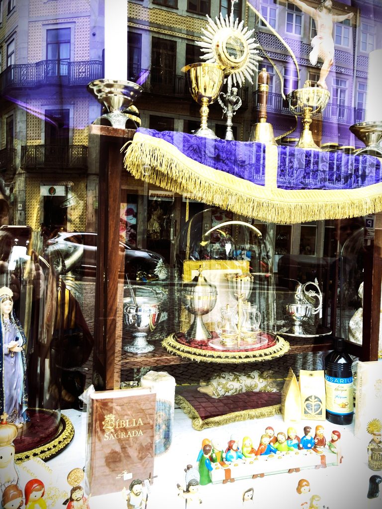 Portossa oli kauppa, jossa myytiin krusifikseja ynnä muita sakraaliesineitä. Kävin myös katolisessa messussa, ja siellähän niitä jänniä esineitä myös käytettiin. Esineillä on tietysti omat symboliikkansa. Onkohan niiden tarkoitus tehdä uskonnollisista sanoista ja käsitteistä kouriintuntuvia? Siinä ne ainakin epäonnistuvat.