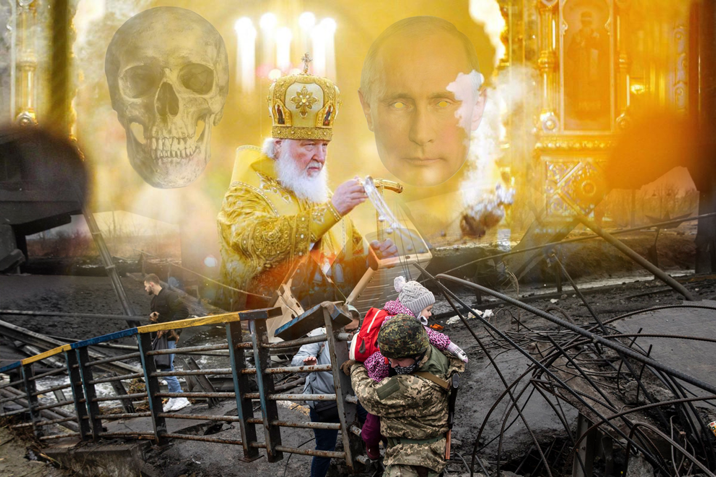 Molempien osapuolten oma jumala on aina oikeudenmukainen ja oikea jumala. Toisinaan useammankin osapuolen. Nyt Moskovan patriarkka Kirill, joka kuuluu Putinin hallinnon pajaristoon, on perustellut sotaa, paitsi Putinin argumentein, myös siksi, että on tuhottava lännestä tullut ”vahingollinen” sateenkaariaate. On käytävä sotaa ”homouden synnin turmelemaa länsimaailmaa vastaan”. Hänestä tämä sota on sota ihmiskunnan pelastukseksi.