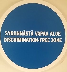 Meillä nuo kyltit ilmentävät sitä mitä työpaikallamme on noudatettu koko ajan – kaikin puolista syrjimättömyyttä.