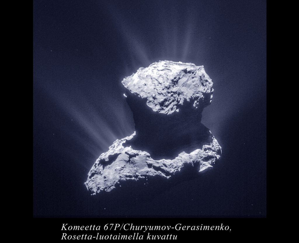 Nimittäin Rosetta-luotain matkasi vuosien ajan 67P/Churyumov-Gerasimenko -komeetan läheisyyteen ja keräsi siitä pölyä vain muutaman kilometrin etäisyydellä vuosina 2014–2016. Ja mitäs löytyi? Elämän rakentamiseen tarvittavat CHNOPS-alkuaineet ensimmäistä kertaa kiinteässä muodossa. Hiili, vety, typpi, happi ja rikki. Ja sitten viimeiseksi fosforia kiinteässä muodossa. Tämä löytö osoittaa tieteilijöistä, että komeetat ovat hyvinkin voineet olla näiden aineiden lähteenä nuoressa Maassa. Asian selvittänyt kansainvälinen tutkimuprojekti muuten on suomalaisjohtoinen.