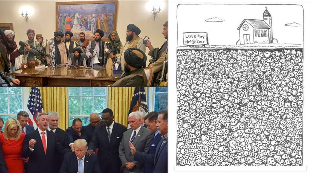 Aikoinaan varhaisella keski-ajalla eurooppalaiset tekivät ristiretkiä Välimeren itärannikolle Lähi-Itään. Ne olivat aseellisia uskonnolla näennäisesti motivoituneita roistoretkiä verilöylyineen. Nämä itsensä Herran ritareiksi naamioineet tyypit muodostivat roistojengejä siinä missä nykyiset islamistit. Ainoa ero näillä Talibaniin on se, että Taliban ei välttämättä ole imperialistinen järjestö sikäli, että sillä ei näytä olevan toistaiseksi samanlaista kiihkoa levittää omaa hämärää islamin tulkintaansa muualle kuin Afganistanin rajojen sisällä eri heimojen alueille. Isis ja al-Qaida ovat uskontoimperialistisia jengejä, kuten oli aikojen takaiset paavin siunaamat ristiritarijengit. Eikä se siihen jäänyt – kristityt eurooppalaiset levittivät 1500-luvulta alkaen satojen vuosien ajan väkivalloin omaa uskontoaan ja siunattua kapitalistista eetostaan Etelä-Amerikkaan, Pohjois-Amerikkaan, Uuteen-Seelantiin, Australiaan, Afrikkaan ja vähän minne vain ehtivätkin. Ruumisröykkiöt olivat rumia. Sitä, lähetystyötä, jatketaan edelleen, vaikka nyt ei enää mennä miekka kädessä. Mutta kulttuuri-imperialistisin periaattein. Kanadassa on juuri paljastunut satojen intiaanilasten ja nuorten joukkohautoja kirkkojen ylläpitämien koulujen tienoilta.
